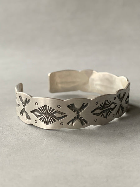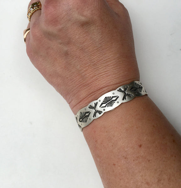 Stamped Cuff bracelet , sterling silver, handmade, navajo stamps