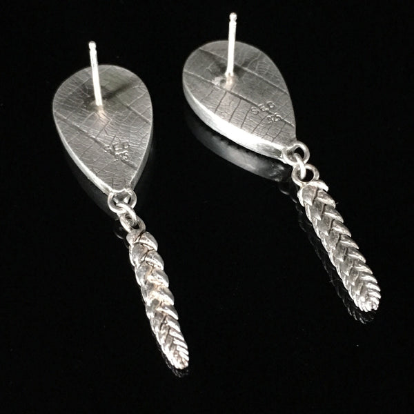 The earings are 1-5/8" long (42mm) and have sterling silver posts and nuts.