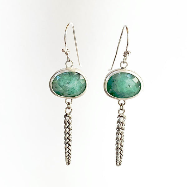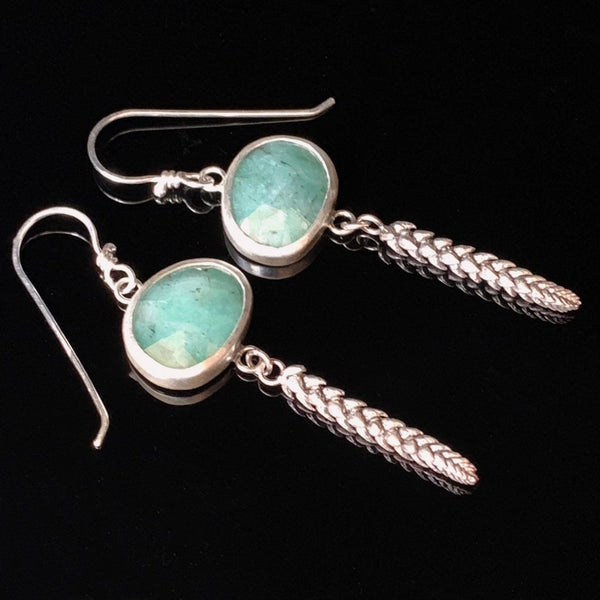These Beautiful Rose Cut Emeralds are set in Sterling silver and have a cast silver succulent charm.