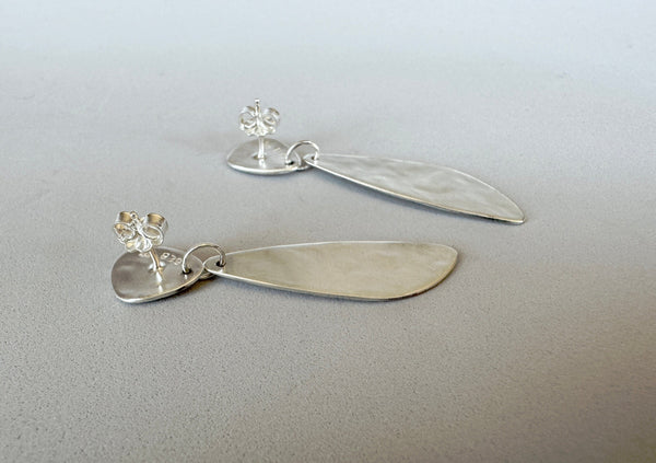 The stud section is 1/4" x 3/8", the dangle is 1-1/4" x 3/8". (12mm x 10mm and 32mm x 11mm).