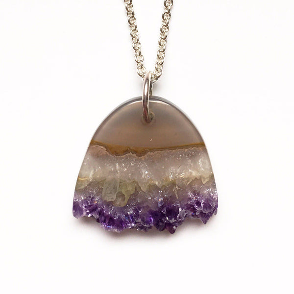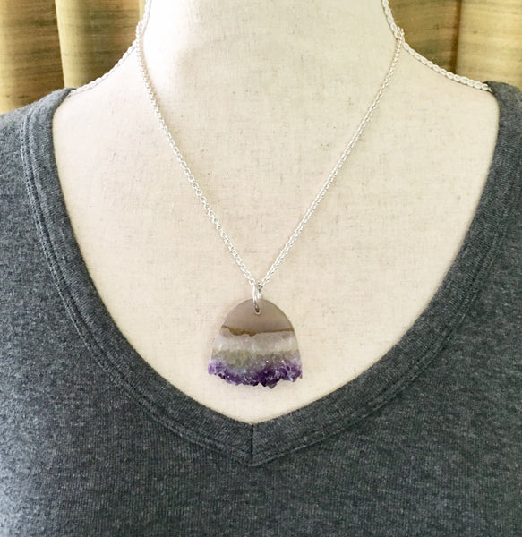 This is a beautiful specimen of Amethyst that I carved on my lapidary wheels. It has beautiful striping and layers to it with nice, dark purple crystals at the bottom.