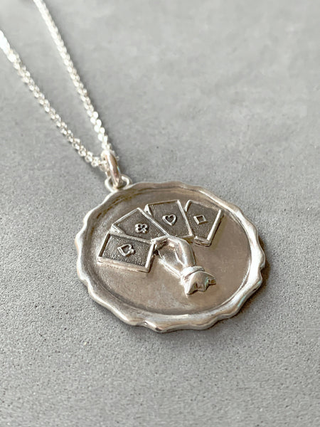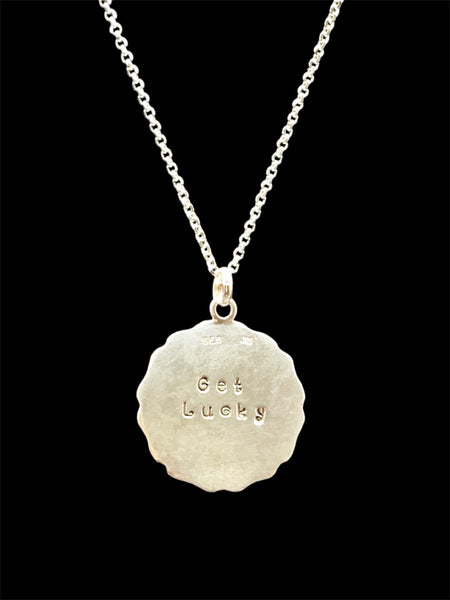 Get Lucky Pendant, Wax Seal, poker chip, sterling silver