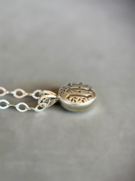 This is a made to order custom pendant with a very small amount of your beloved pet's ashes inside. The front side will have a Gothic Letter of your pet's first initial. The back side can be a paw stamping, a heart, or left blank.