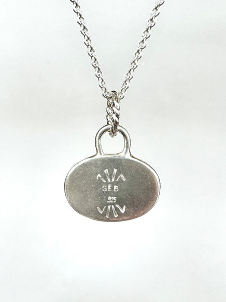 It hangs from a delicate 18" sterling silver chain with a lobster clasp.