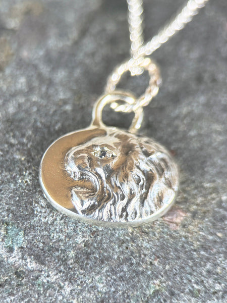 This is a cute little nugget pendant has the face of a roaring lion. It's made from pressing solid sterling silver into a vintage jewelry die. The lion was hand carved into a piece of steel over one hundred years ago! It's been refurbished for making modern jewelry.