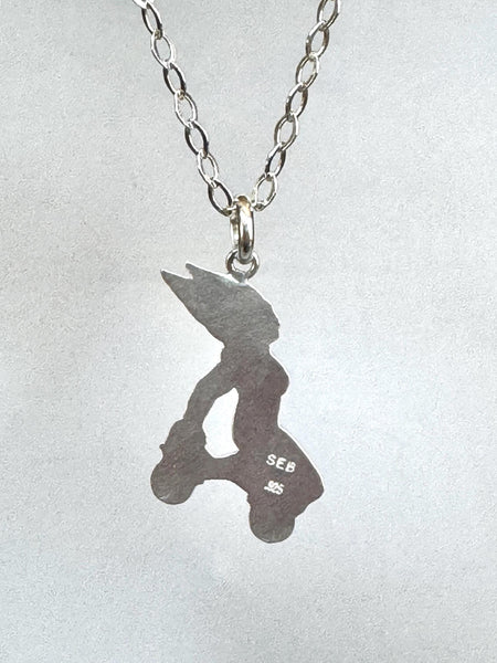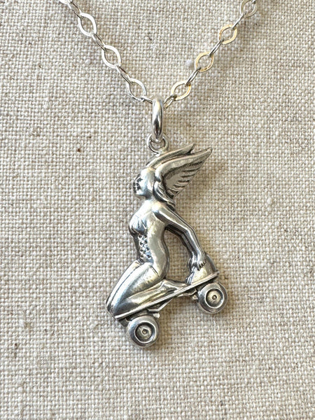 Roller Skating Angel pendant in sterling silver, roller derby, goddess Nike