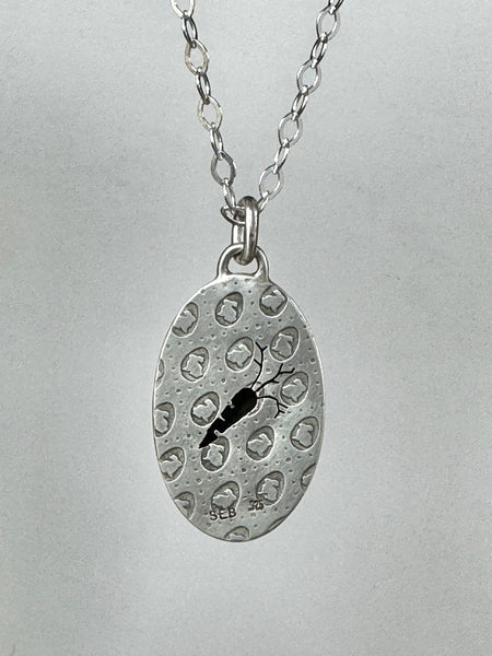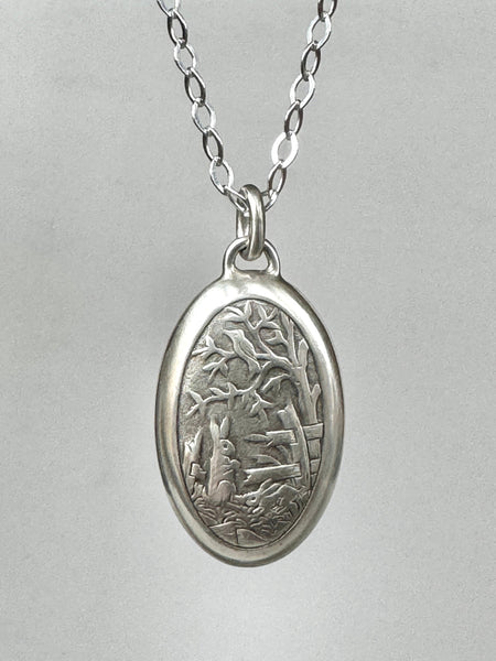 The pendant is sterling silver and 1-1/4" x 3/4" (32mm x 20mm) in size.