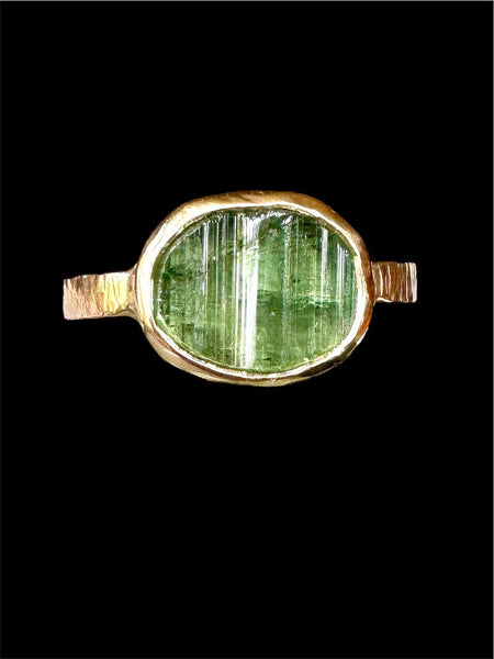 This beautiful green Tourmaline is from Brazil and the top has been left with it's natural crystal structure. The stone itself is a nice green with a hint of teal. The crystal structures are vertical bars and there are natural inclusions within the stone itself. I polished the bottom and sides of the stones to make it completely translucent.