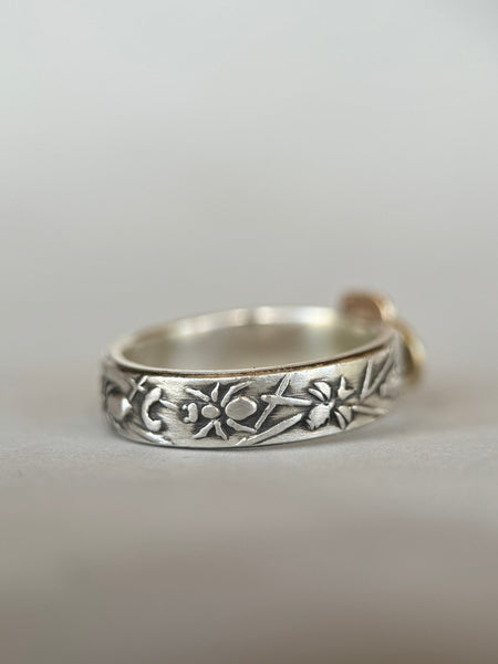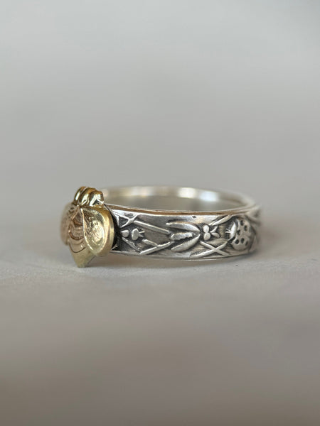 I love this ring, it is a beautiful design, very unique. The detail in the band is so well designed and really pretty. I love the gold bee, it's just the right size. Super fast shipping.