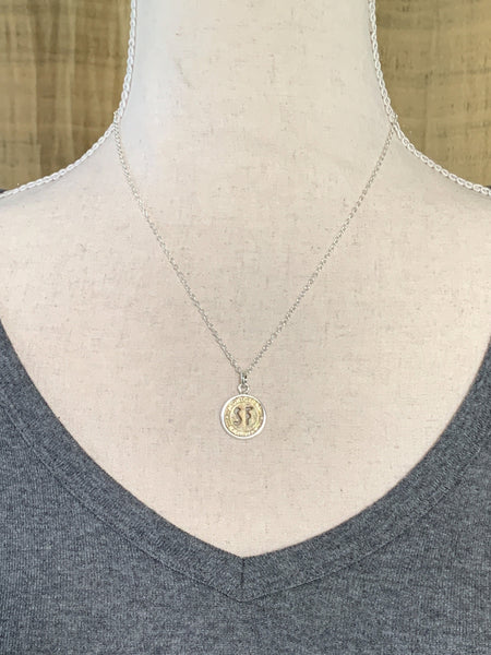 The token is a little less than 3/4" (18mm) in size and has a sterling silver bezel. It's open backed, so you can see both sides.